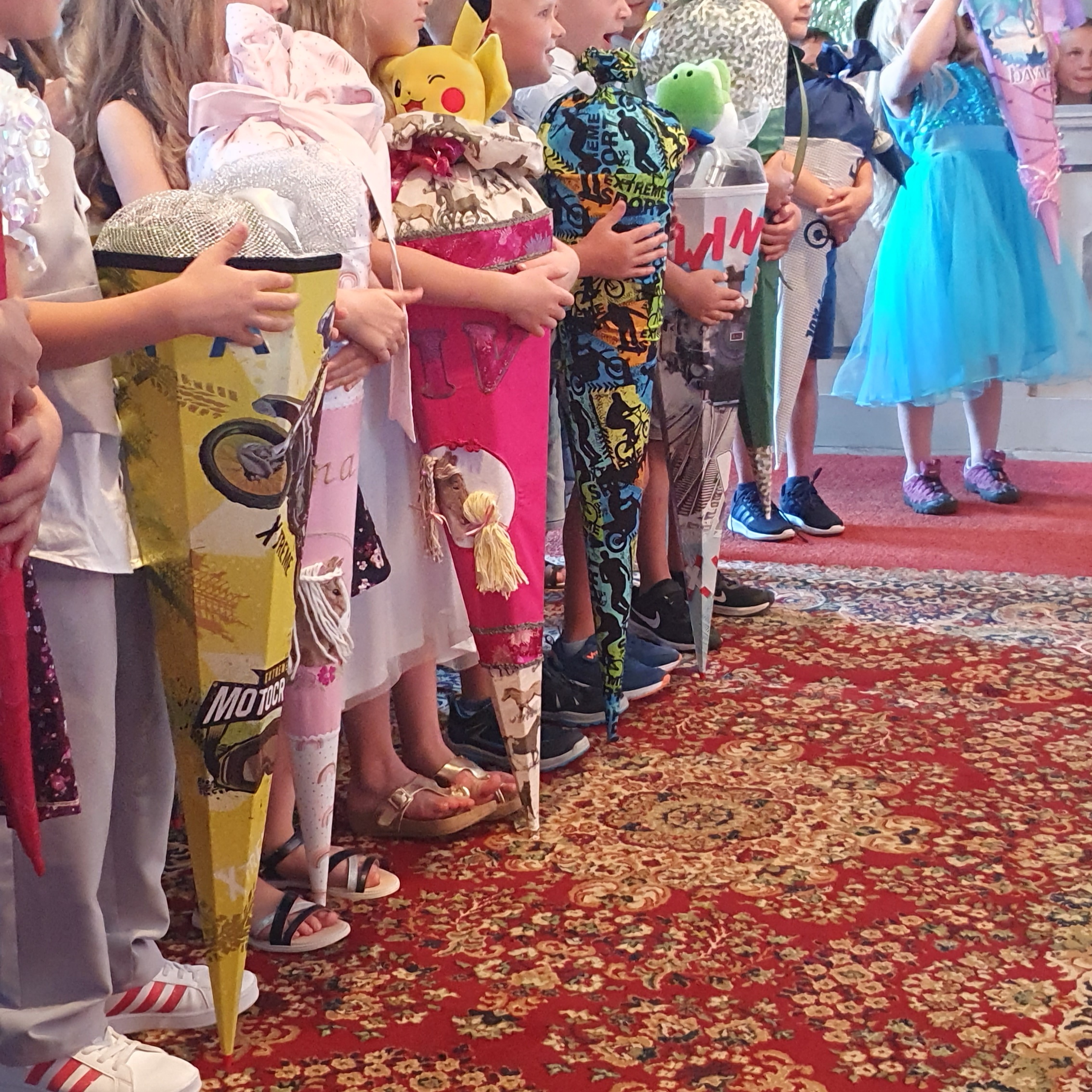 Im Anschluss hießen die Patenkinder der Klasse 3 die Schulanfänger mit peppigen Liedern und einem Anspiel willkommen. Natürlich gab es auch große und liebevoll gestaltete Zuckertüten.