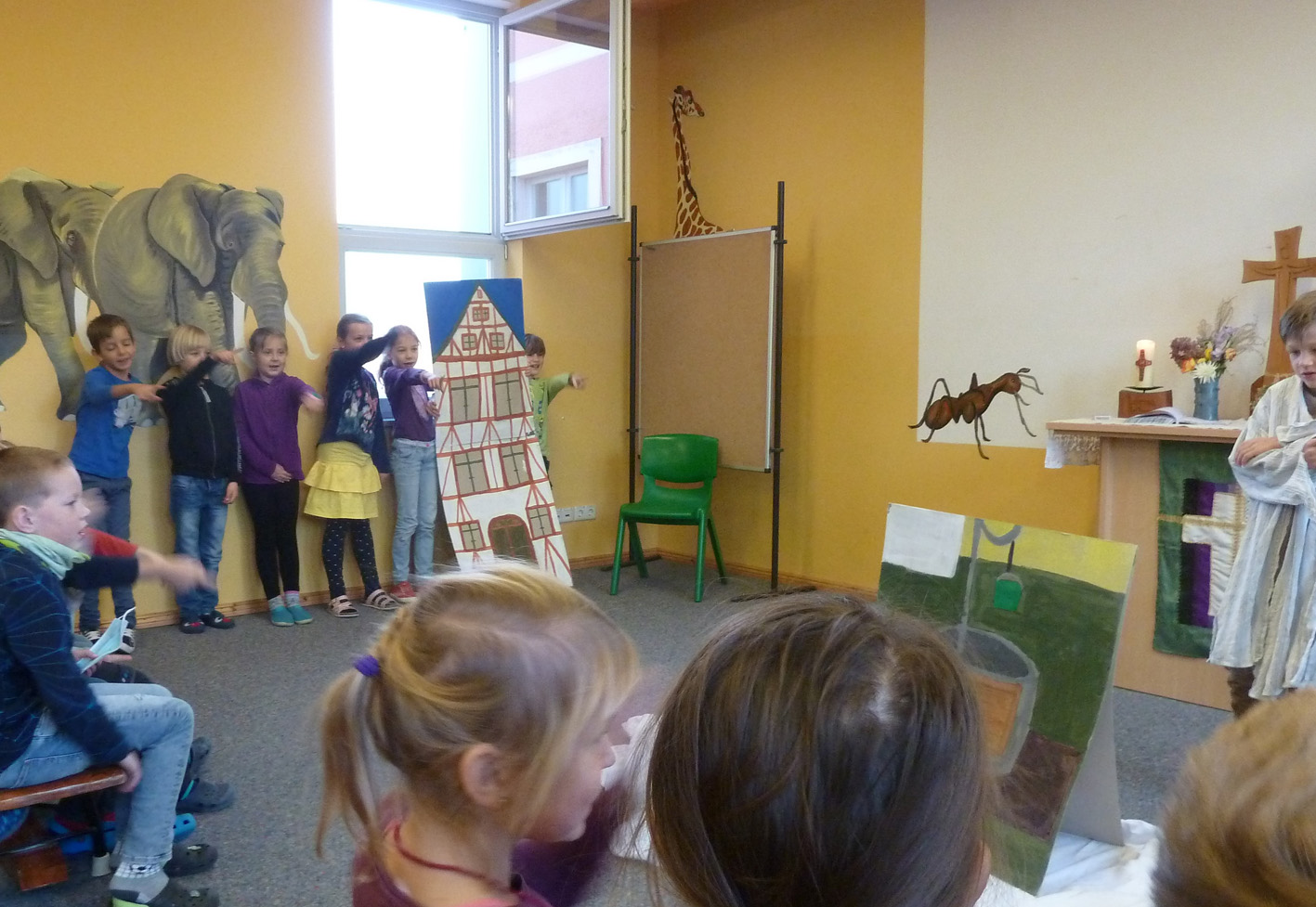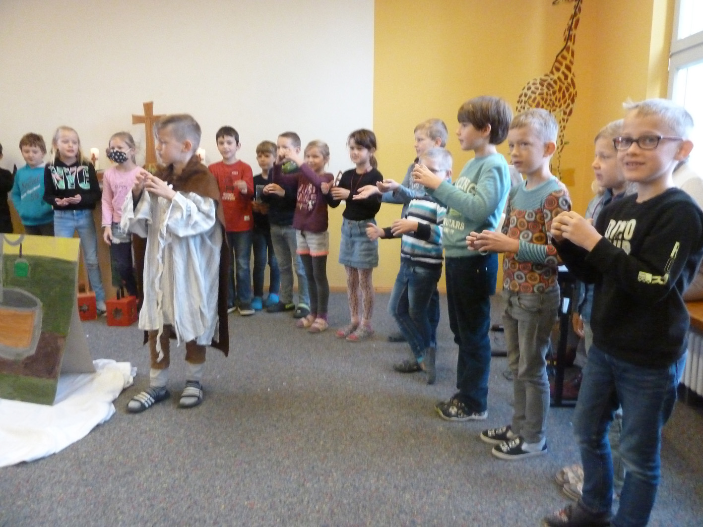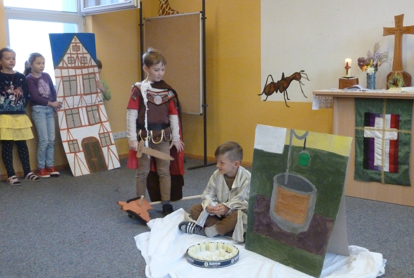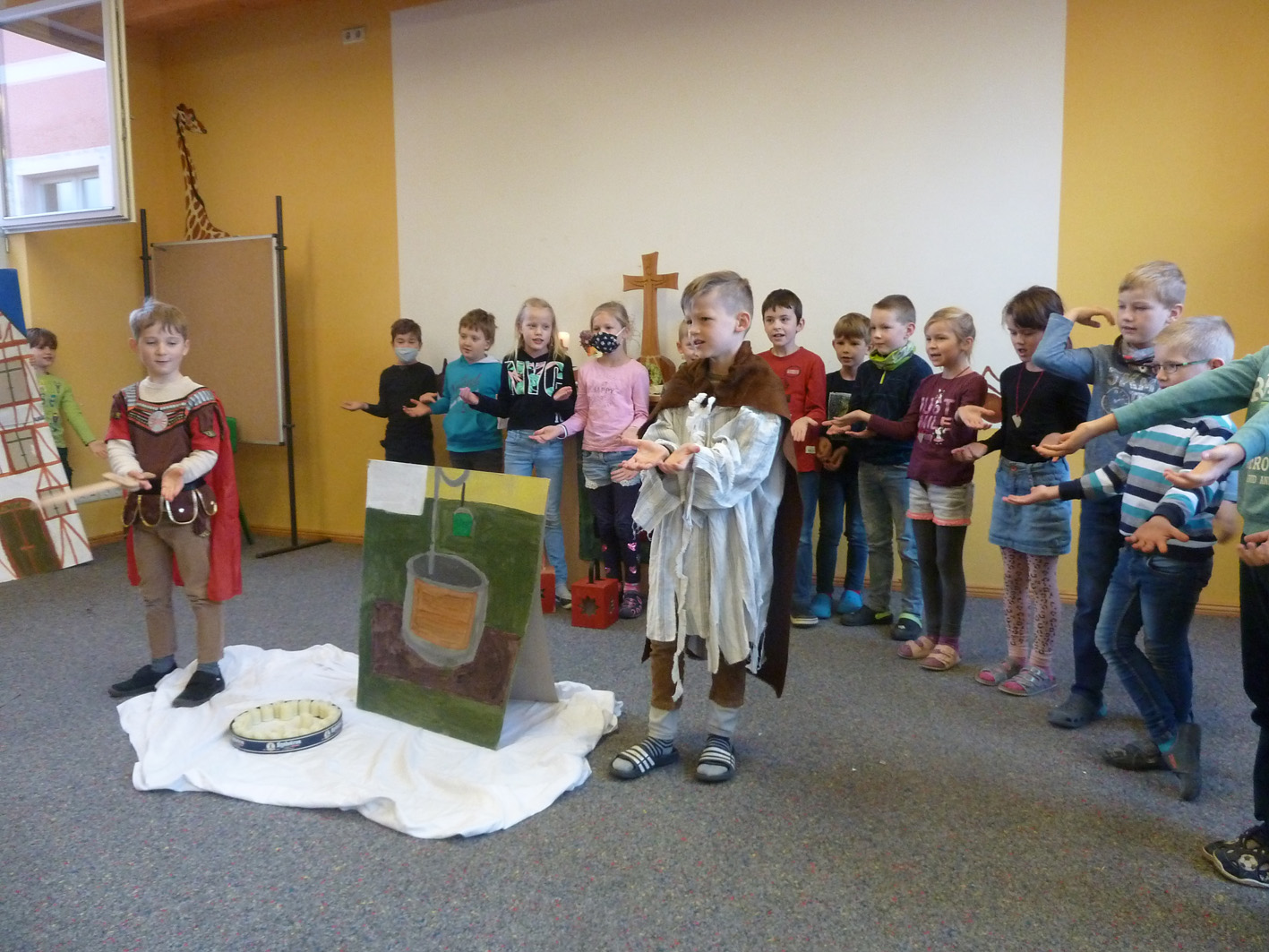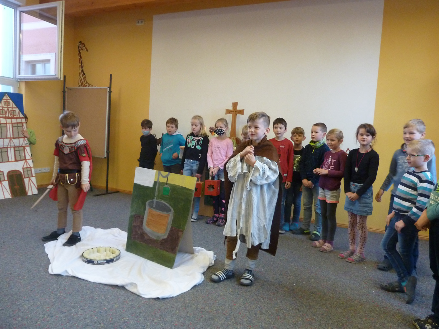 St. Martin gedachten wir in einem Schulgottesdienst. Die Klasse 2 stellte uns die Legende von Sankt Martin in einem Anspiel dar.