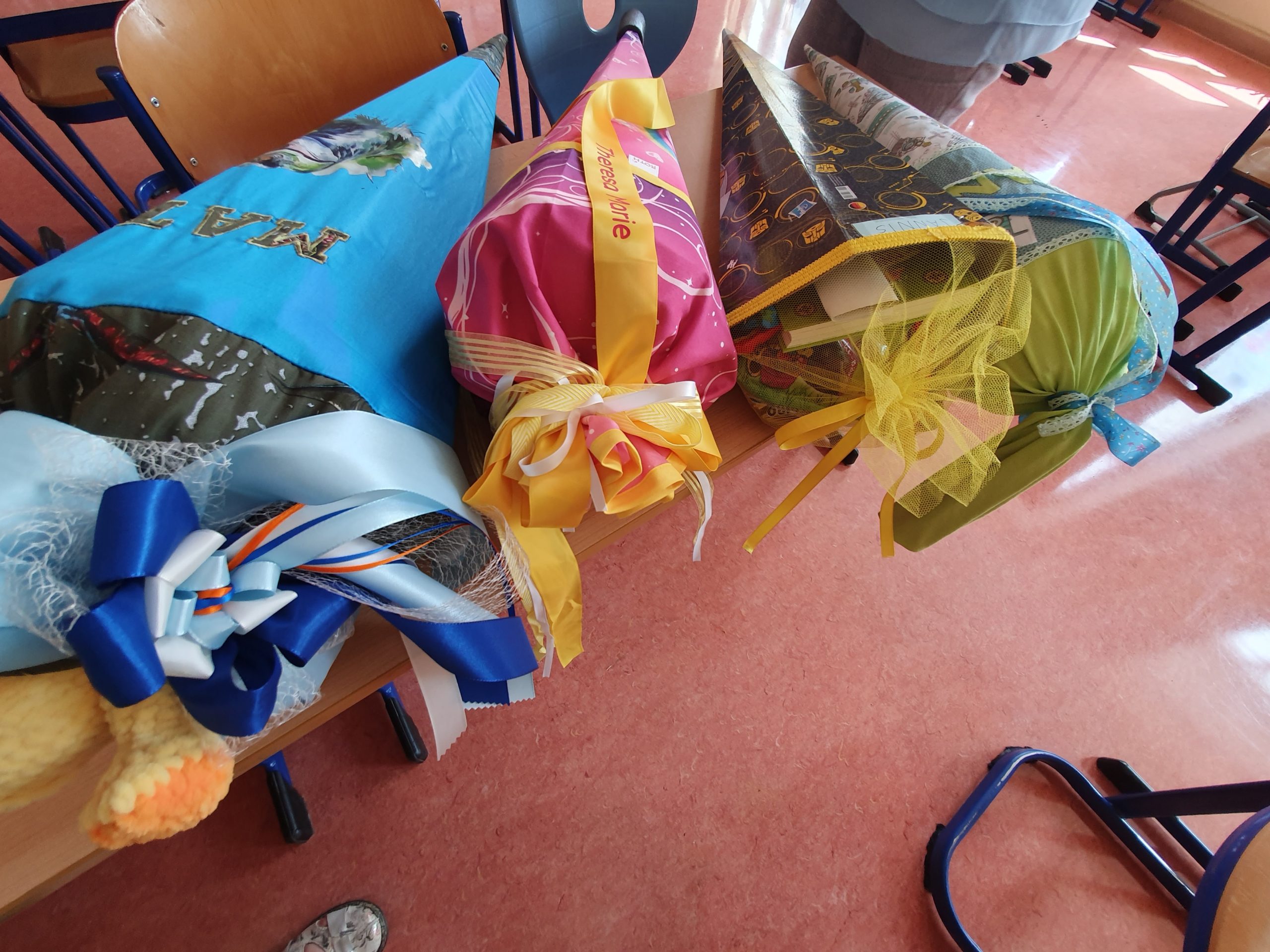 Am Samstag, den 3. August 2024, feierten wir den Schuleingang. 24 Jungen und Mädchen der neuen Klasse 1 begrüßten wir so an unserer Schule. Gemeinsam mit ihrer Klassenlehrerin Frau Lichtenstein und ihrer Erzieherin Frau Bludau zogen sie feierlich in gut gefüllte Kirche ein. Die Patenkinder der Klasse 3 und Pfarrer Stahl gestalteten den Gottesdienst mit aus. Natürlich gab es am Ende auch für jeden Schulanfänger eine Zuckertüte.