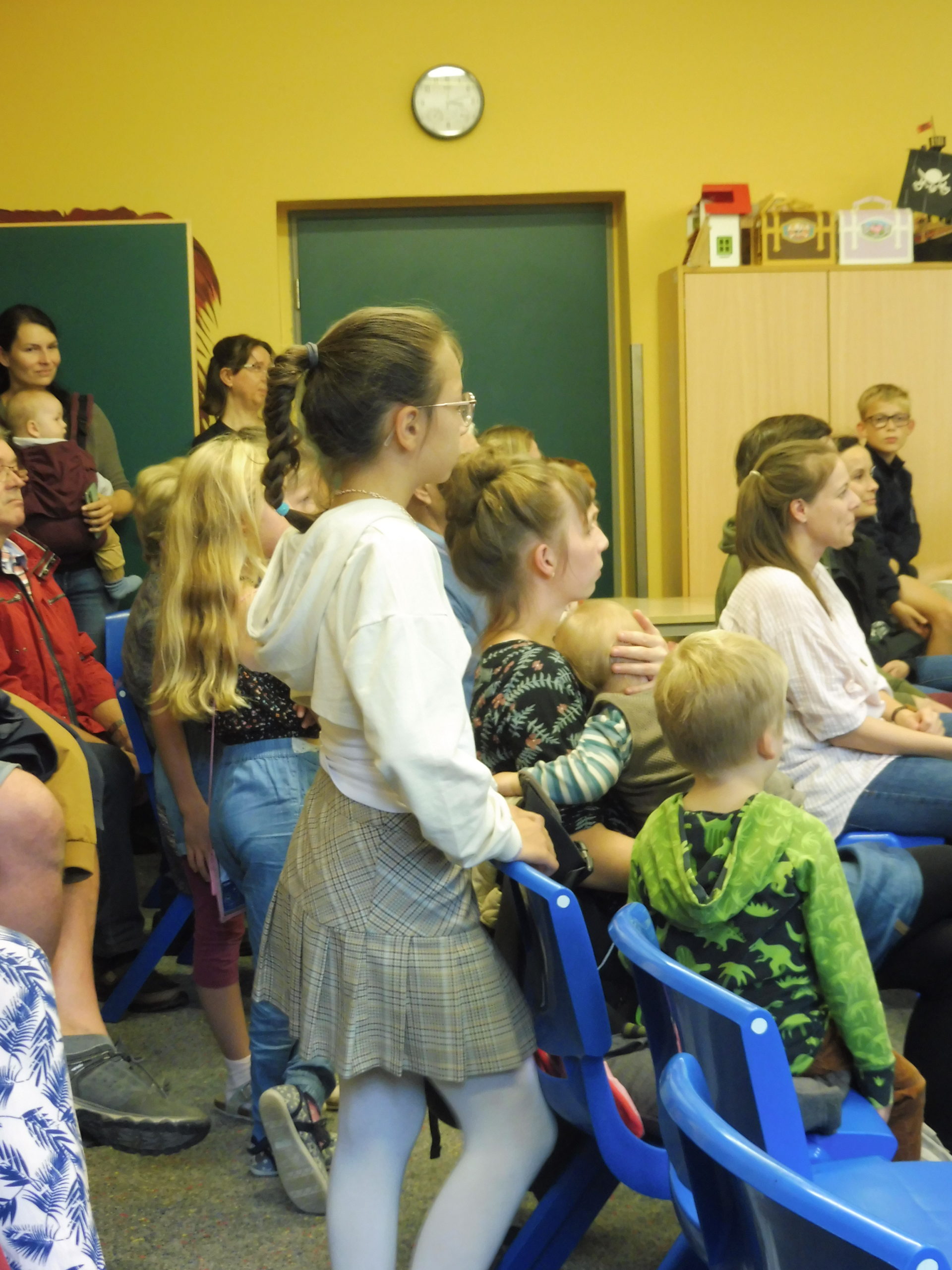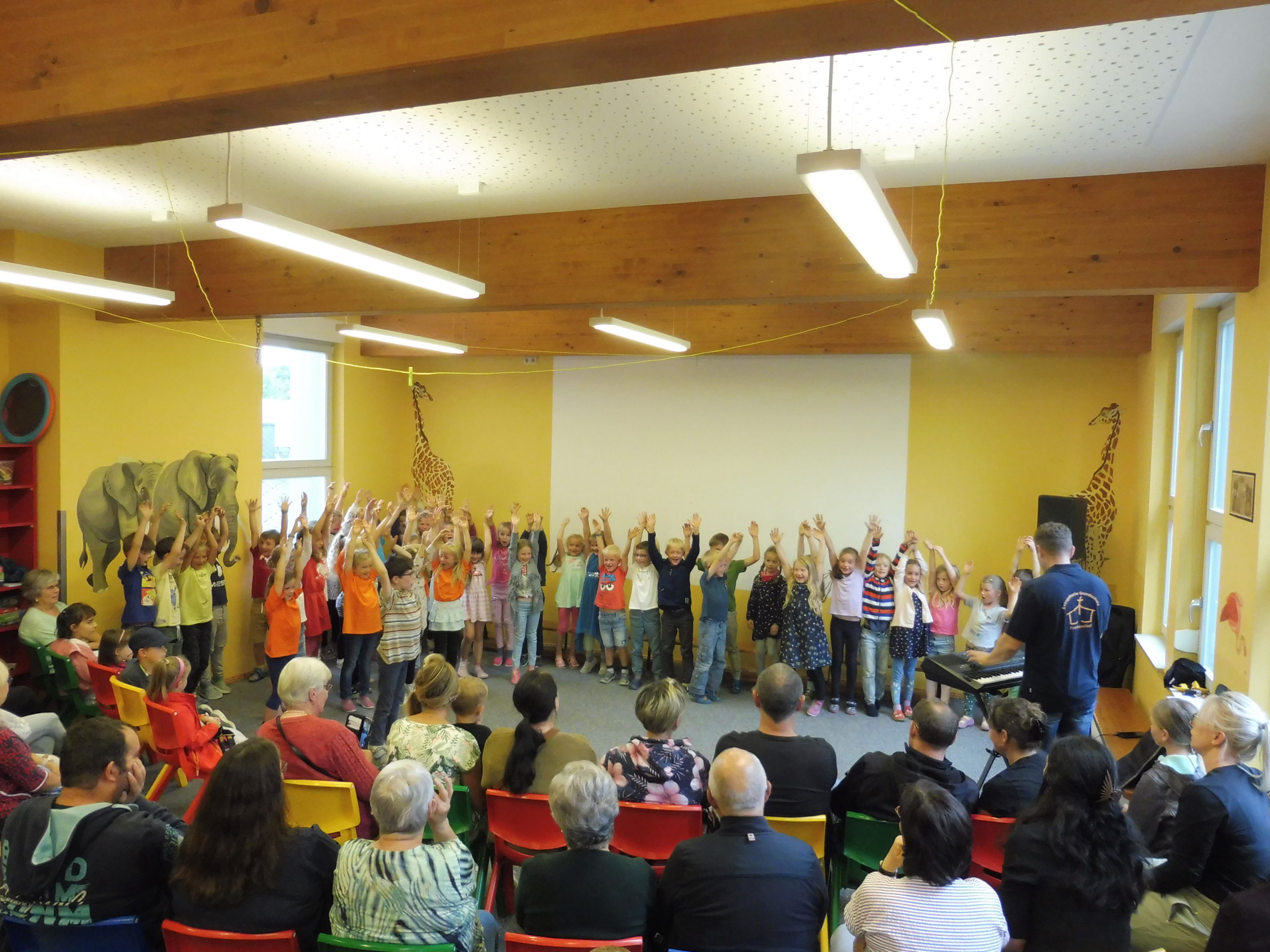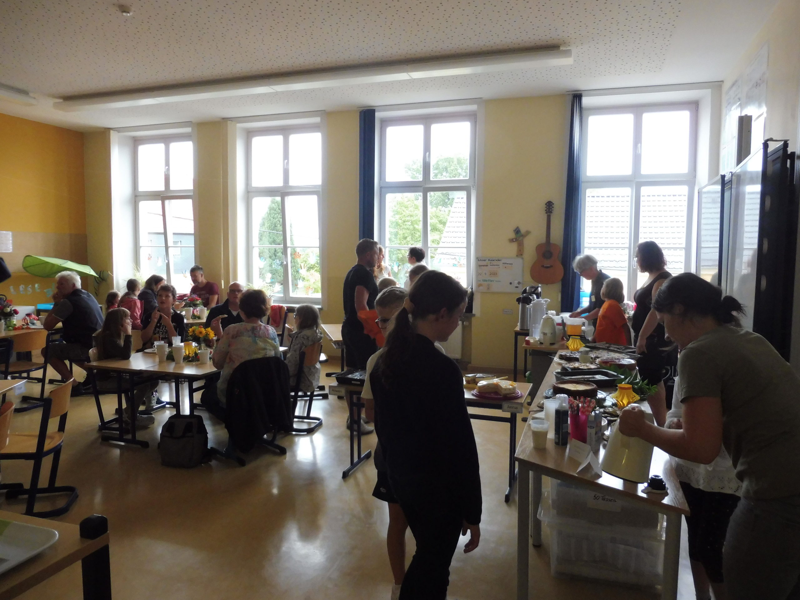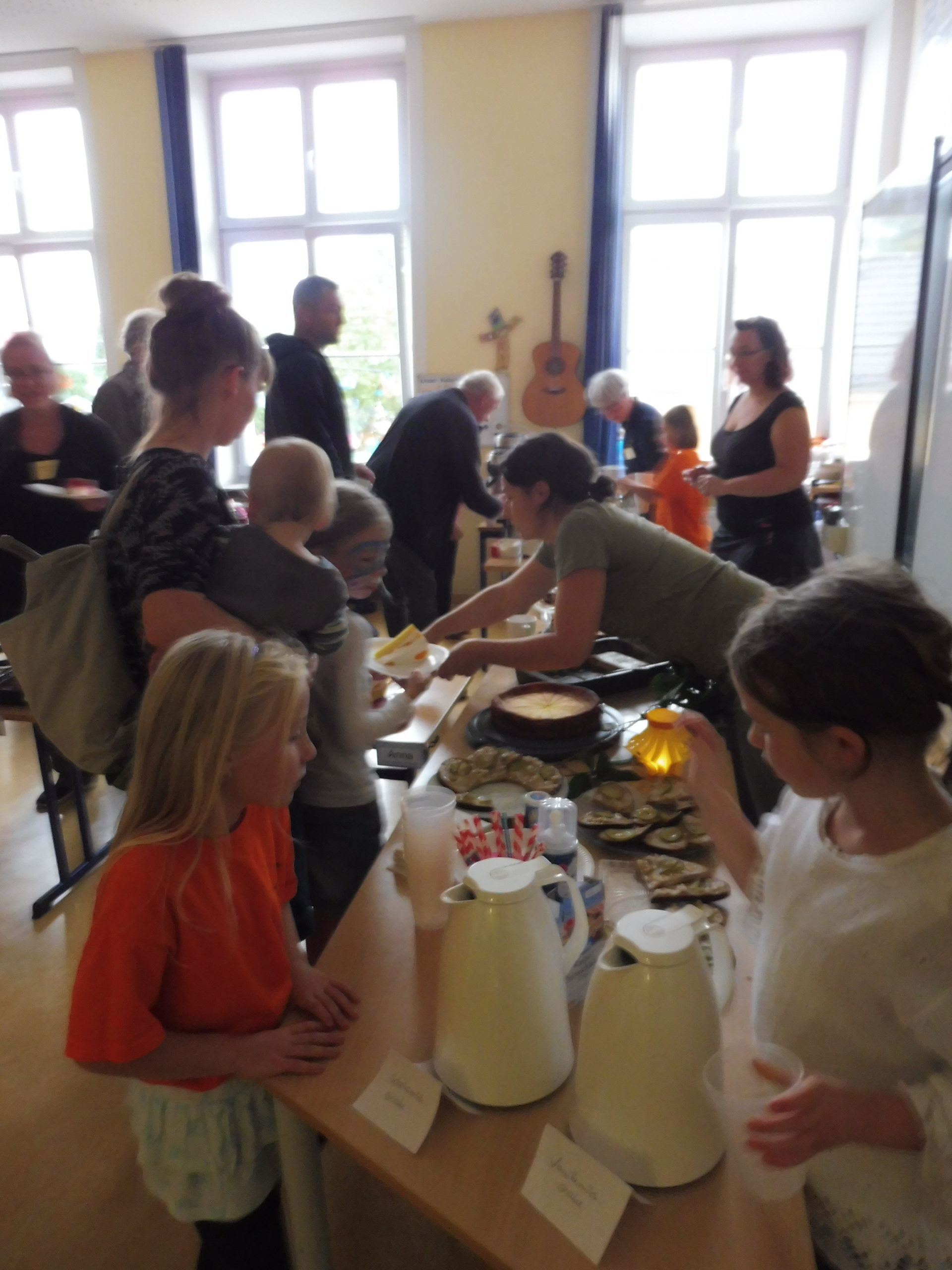 Unsere Schulhausführer zeigten gern unsere Räumlichkeiten. Die Kinder der Klassen 1-4 erfreuten alle Gäste mit Beiträgen aus dem Musikunterricht in unserer Arche. Im Schülerkaffee der Klasse 3 gab es eine große Auswahl an leckeren Kuchen und Waffeln. Da fiel es so manchem nicht leicht, eine Auswahl zu treffen.
